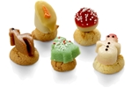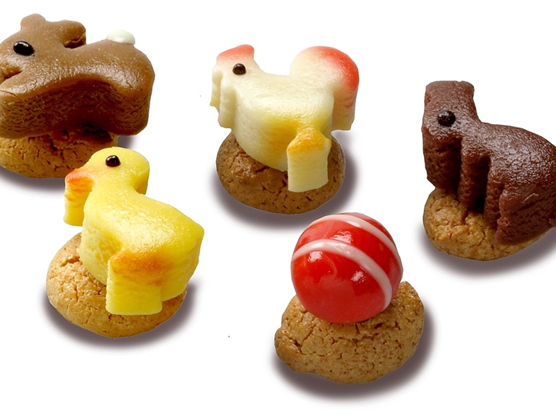 Een traktatie van kleine amandelkoekjes, bestreken met wat abrikozengelei met daarop een marsepein figuurtje. Ze worden in 5 soorten per 15 stuks in een doosje verpakt. In de weken voor Pasen worden ze uitgevoerd met Paasdecoratie en van 6 t/m 24 december met Kerstdecoratie.