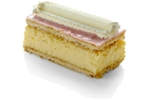 De tompouce is een van onze specialiteiten. Het gebakje bestaat uit twee plakjes krokante bladerdeeg met daartussen een laag frisse (gele) banketbakkersroom. LET OP! in de dagen voor Koningsdag wordt de tompouce geleverd met Oranje fondant (23-27 april), op andere dagen wordt hij geleverd met rose fondant